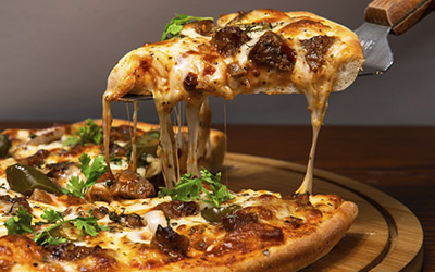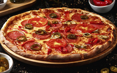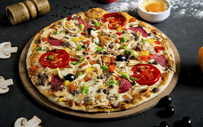 Pizza recheada com calabresa e azeitona da mais alta qualidade